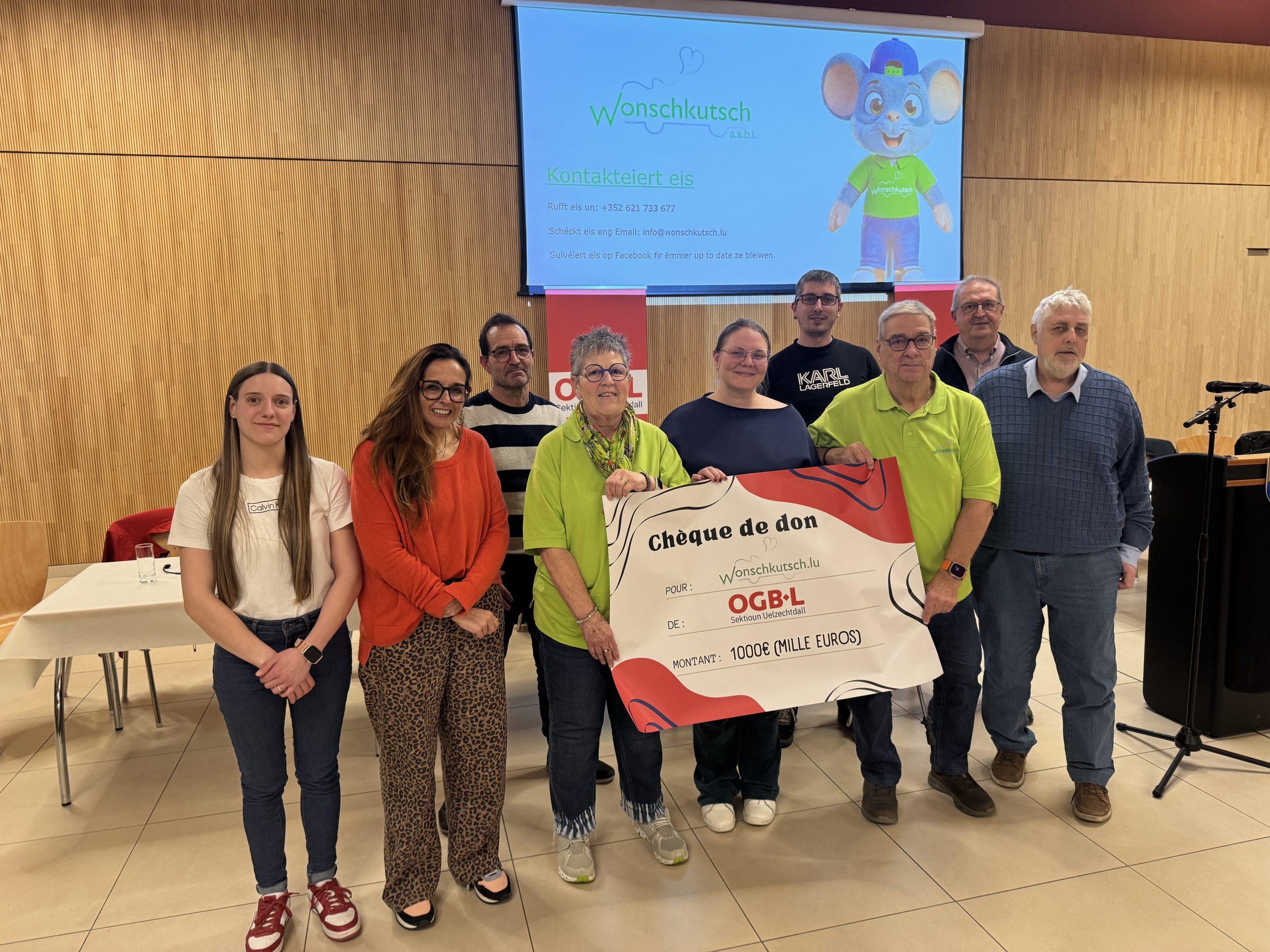 Helmdingen statt. An diesem Abend überreichte die Sektion einen Scheck an die „Stëmm vun der Strooss“ mit einer Spende von