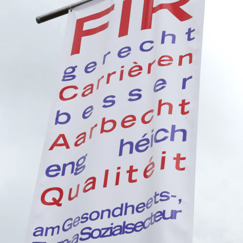 Plus de 9 000 salariés travaillant sous la Convention collective de travail FHL et SAS ont montré le 4 juin 2016 par leur présence massive et bruyante qu’ils en ont ras-le-bol des méthodes du patronat qui joue la montre alors que leurs revendications sont légitimes! Après le départ boulevard Pierre Dupong, près du Geesseknäppchen, le cortège est parti avec fracas en direction de la place des Martyrs, où Nora Back, la responsable du syndicat Santé, services sociaux et éducatifs et membre du bureau exécutif de l’OGBL, a dans un discours engagé, dénoncé l’attitude inacceptable du patronat en exigeant la transposition immédiate de l’accord salariale de la fonction publique dans les deux conventions collectives FHL et SAS