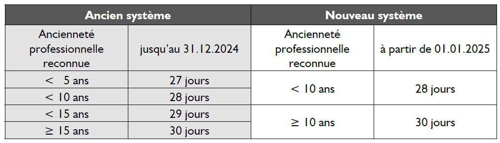 • Révision des congés de récréation, avec effet rétroactif au 01.01.2025 :