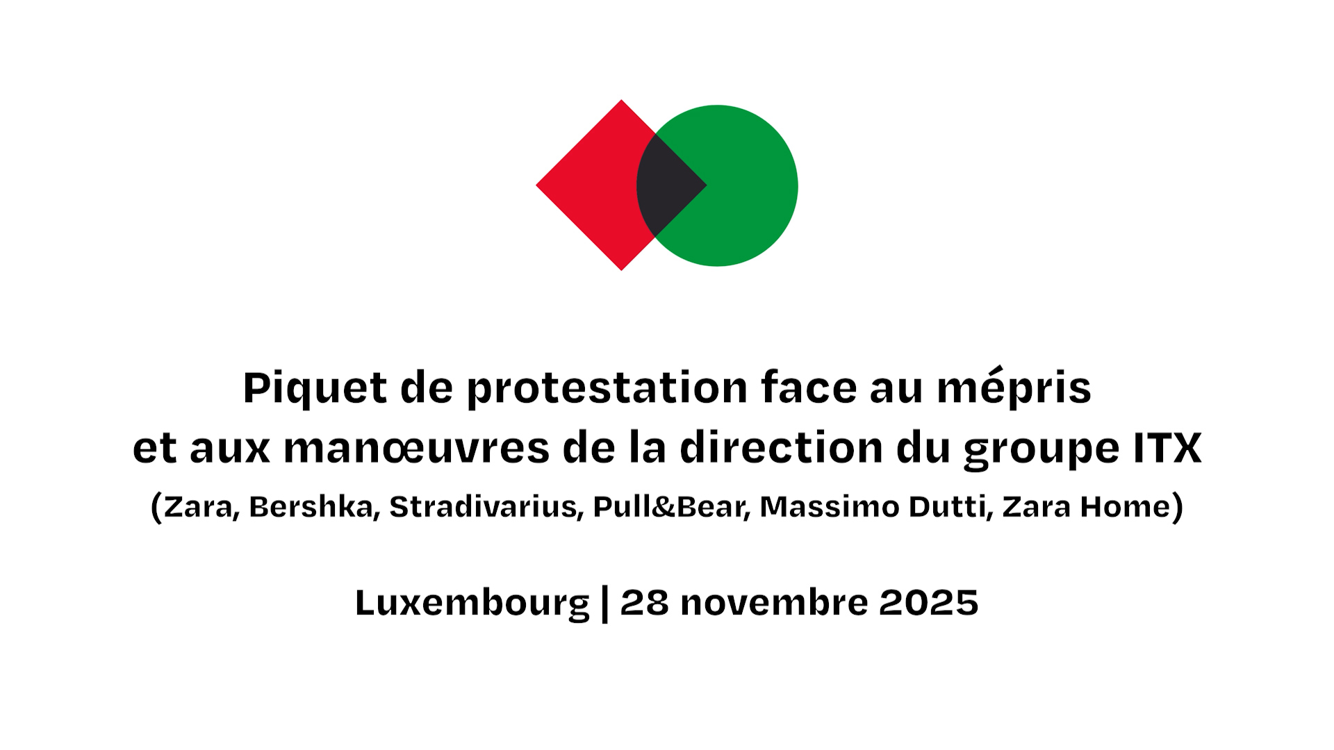 Piquet de protestation face au mépris et aux manœuvres de la direction du groupe ITX Piquet de protestation face au mépris et aux manœuvres de la direction du groupe ITX (Zara, Bershka, Stradivarius, Pull&Bear, Massimo Dutti, Zara Home)